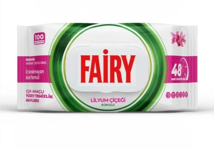 دستمال مرطوب فیری چند منظوره پاک کننده سطوح رایحه لیلییوم 100 عددی Fairy