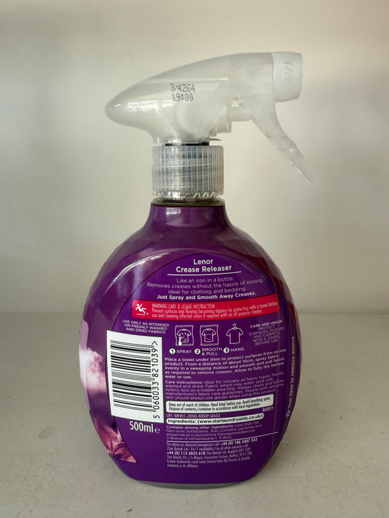 اگر بعد از شستشوی لباس ها، لباس هایتان بسیار چروک می شوند و اتو کردن برای شما امری دشوار است، پیشنهاد ما اسپری ضد چروک و خوشبو کننده لباس لنور lenor است. این محصول علاوه بر اینکه لباس ها را اتو پذیر کرده و چروک های لباس را کاهش می دهد، آن ها را خوشبو می کند. اسپری ضد چروک و خوشبو کننده لباس لنور lenor دارای رایحه Lenor Exotic Bloom است و لباس ها را با رایحه ای خوش و ملایم خوشبو می کند.